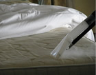 Yatak yüzeyindeki tozlarýn alýndýðýndan emin olunduktan sonra, yatak dört taraflý buharlý temizlik makinesi yardýmýyla dezenfekte edilmelidir. Buharlý temizlik sayesinde yatakta oluþan toz böcekleri (Akar, Mite) yok edilmektedir.